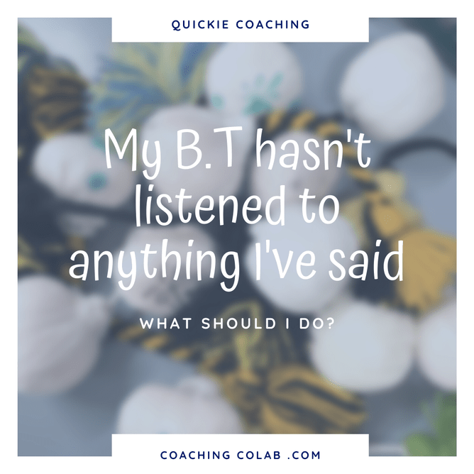 Here are some coaching questions that can help you to find the answers that work best for you (and hopefully your B.T):